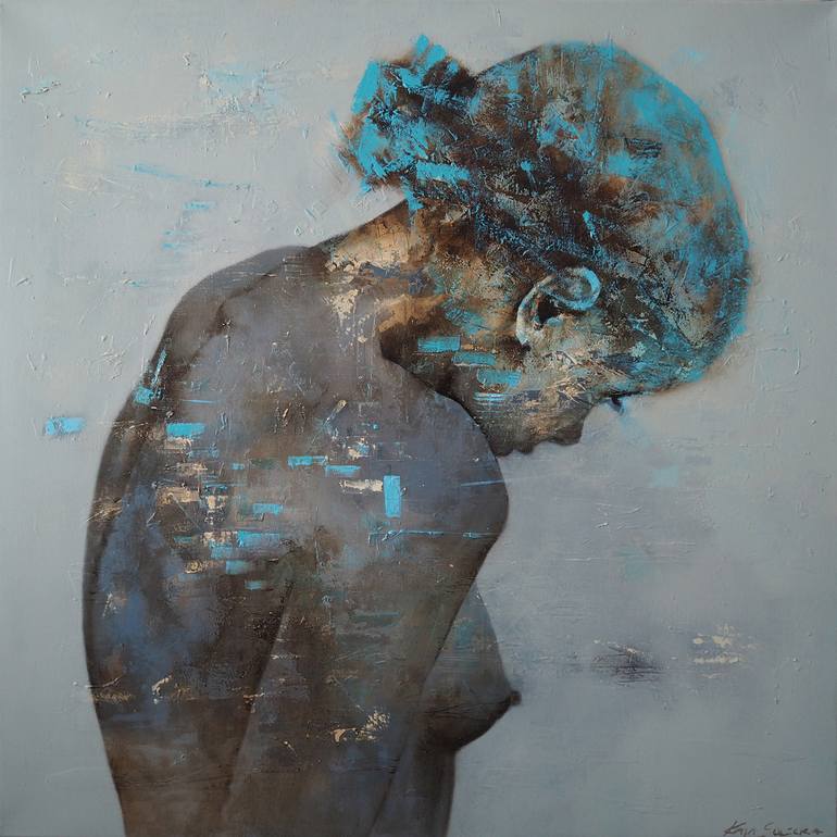 The central and most frequent focus of my painting imagination is on the human figure, fully immersed in a piece of landscape, searching for his or her own structure in the bosom of nature, or just falling apart into abstract shapes. It is made with multilayered oil tehnique.