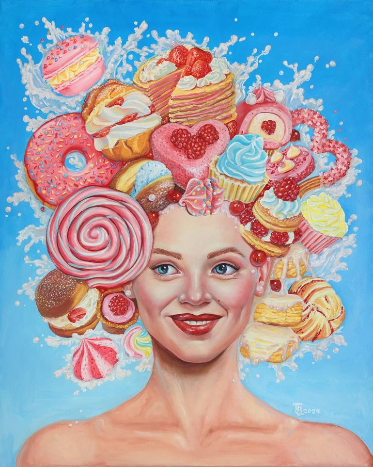 Women's beauty inspires me again and again. I come from Poltava, it is a cozy city in the central part of Ukraine, with a rich history.In 2009 I graduated from Poltava National Technical University. Y. Kondratyuk (PNTU), Faculty "Architectural", Specialty "Fine and decorative arts"There I was taught to create sculpture, graphics and painting.After graduating from university, in search of work, I moved to Kiev, the capital of Ukraine, where I still live. Painting is my passion, when I start to paint a picture it is like meditation and music helps me in this. I have two sisters and two cousins, and probably this is what taught me to appreciate female beauty. Everyone in our family is beautiful and each individuality. Among my two sisters, I am the younger one and I really liked to watch how my sisters change and mature, how they bloom like flowers and become more and more beautiful every day. But a woman is not only her beauty, it is also emotions of happiness and sadness, sexuality and sensuality, strength and passion, anger and even revenge. I like to watch how women move, how they laugh and talk, female plasticity is incredible. The main series of my paintings at the moment is "Dessert Girls", where in portraits I convey female beauty emphasized by desserts made of ice cream, fruits, berries and chocolate. But in my paintings you will also find seductive women with snakes and warrior women with swords. I love to praise women's beauty and I want to dedicate my artwork to it. I like to work in the technique of old masters without using paint solvents, all my paintings are painted exclusively with oil. For paintings, I use oil paints and canvases stretched on stretchers. I like to use pastel colors, especially blues and pinks, they remind me of the sky at sunset and go well with desserts. I also like the combination of deep blue, red and black colors, for me these are the colors of passion. My favorite artists are Boris Vallejo and William-Adolphe Bouguereau and they left an imprint on my perception of female beauty. Usually, when I paint one picture, I'm already planning several more. I want to reveal to the world many small images of beautiful, passionate, gentle, strong, militant and even dangerous women. The purpose of my work is to give joy. I want people to smile while looking at my paintings, I want to make people happy and give positive emotions, because only kindness can save the world.