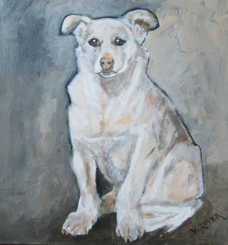 Portrait of our little terrier cross Millie in contemplative mood......... Painted onto a box canvas this has no need for framing & can be hung straight onto the wall.