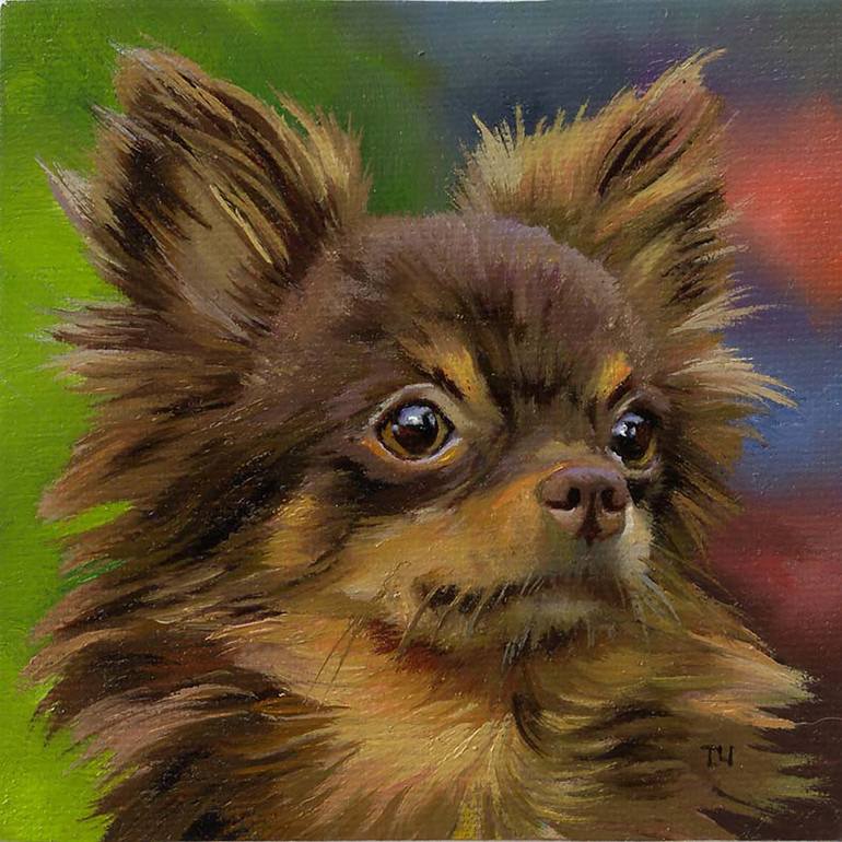Miniature from the series of works "Portraits of dogs in miniature". Made on canvas with oil paints of the professional series "Master class" from the factory "Nevskaya palitra". Framed in Italian plastic. Behind a special device (hanger) for hanging on the wall. Single and original author's paintin...