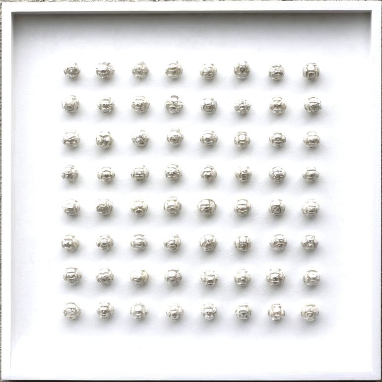 The paintings and wall objects of mine can be placed in the category of colorful minimalism or abstract art. My starting point is the search for beauty in symmetry, rhythm, and color. My passion is to use finds of nature and/or natural materials in my work and transform them into minimal art objects. In my works you will find oyster shells, razorshells, treebarks, capsules, nuts, and seeds but also shredder wood, paper maché, etc: Sometimes the structure is the most important part and the artwork is made entirely in one color. The paintings fit perfectly in a modern environment, home, or business and speak to many art lovers who have a penchant for "less is more". In a more classic interior, it will give a special touch by the contrast it creates.
