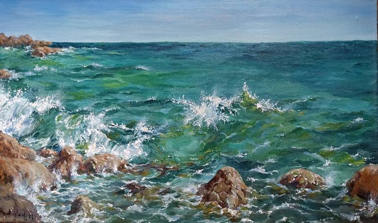 The image of the sea symbolizes the prospekt.Therefore,paintings depicting the sea are recommended to have in work offices.The motive for my painting with the seashore was born to me on vacation on the shores of the Adriatic Sea.I was attracted by the color sheme of the water.The painting is made of...