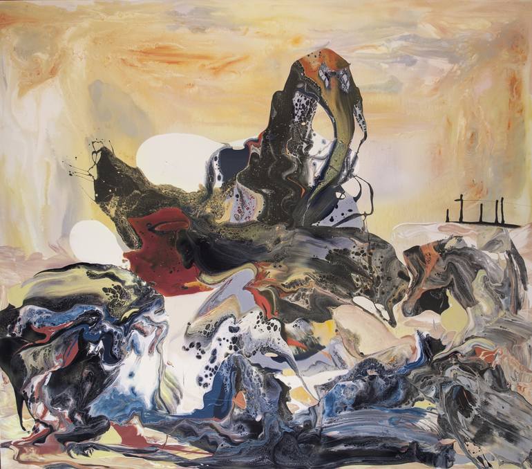 The artworks that I have been accumulating arise from observing how the clouds alter their shapes with the wishes of the wind, forming infinite chains of unrepeatable images, although beyond abstract images, clouds also interest me as a source of analogy between their moods and their literary interpretations, which leads me to make artworks with a metaphorical and even satirical theme. The magic of their metamorphoses becomes for me, in an obsession with the observation of light, darkness, movement and everything that it’s transmuted, being an important reference for my compositions; it is the landscape, the keynote, the level of the scale, to interpret ambiguous symbols, androgynous figures, an image that observe us giving the sensation that they come from a remote order. This challenges me as an artist to try to achieve the beyond, for being an act of creation with my own terms and internal emotions. I like to build, narrow and prepare my own canvas, it is my first encounter with wood, canvas and the creative process. Acrylic is my main medium, although sometimes I use mixed media, for example, ink, oil, charcoal, oil pastels, pencils, airbrush and other materials. I start by attacking the blank canvas spontaneously, each step builds on the previous step, leaving room for chance. Using concepts typical of abstract expressionism, lyrical abstraction and informalism. Undertaking the pictorial act from attitude and matter as absolute action, giving importance to the resources of intuition, accident, the vitality of the expressive aspect, the suggestive capacity of the surface and the automatism to transmit the energy of the gesture, at the same time, I assimilate the way to accentuate the vaporous color fields, alternating and merging the blue, red, green, yellow, gray, black, white and violet ranges. Using the cold and warm colors with their respective complementary colors to create contrasts where the perspective through the colors stands out for its leading role in each of my artworks, accentuating the expressive intensity and the feeling of concern that emanate from the surface. Each artwork is unique, the creation and development of each one can be a slow process that usually lasts days, weeks and even in some cases up to months in the drying and technical process to bring the artwork to its maximum point of aesthetic expression.