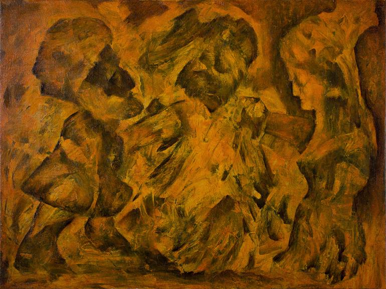 First I painted an abstract painting using gesso and acrylic paint: sort of intuitive painting, without any plan. Then, within a few days I’ve been contemplating that picture in different angles looking for any images in spots. After finding interesting characters or scene I started the second sessi...