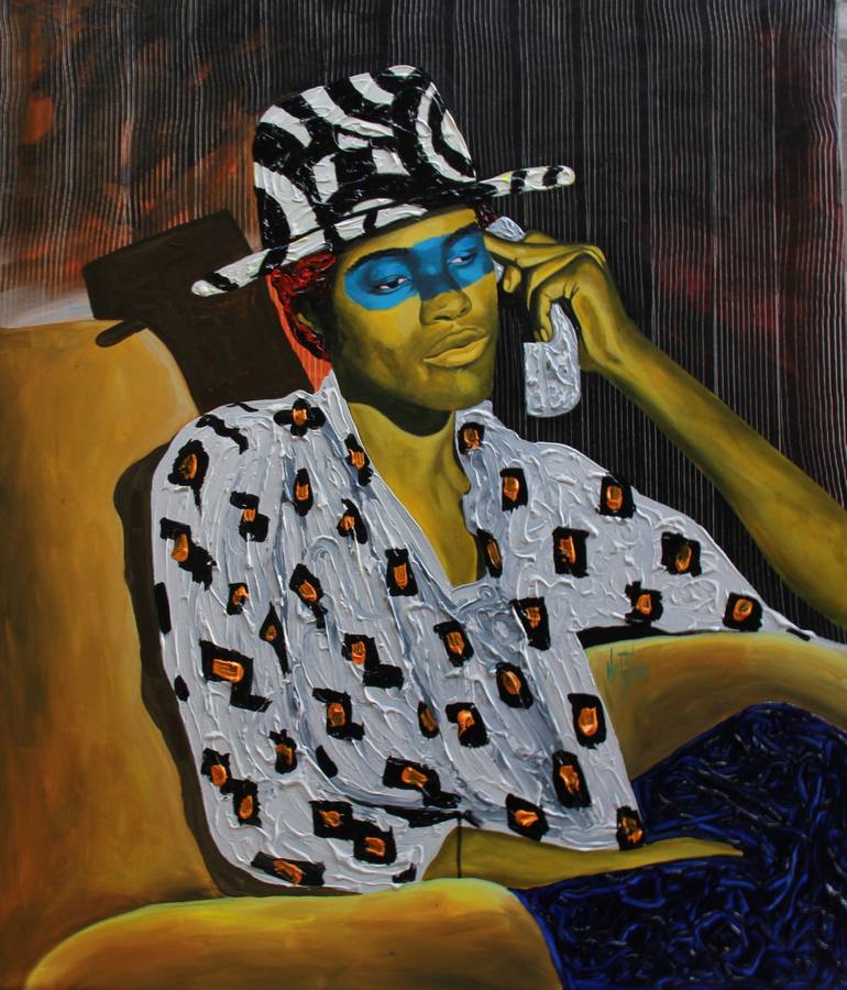 In his work, Tetteh condenses the internal sentiments and tensions of his characters and focuses them, using the eyes as the outlet for expression. In this way his subjects become independent bodies, bold and daring. By examining the psychological conditions we as humans are prone to experience, and then exhibiting them through physiological manifestations of that experience, Tetteh’s work is processual in nature, approaching each personality with care and consideration. His experiments are not only in content but in form, colour, and texture, manipulating paint through swift brush strokes and thick impasto. Theophilus Tetteh (b.1991) lives and works in Accra, Ghana. He studied Graphic Design and Painting at Marimus Art School, whilst continuing to experiment with different media. After finding solace in the pictorial possibilities that Expressionism offered, he found figurative paintings most effective in exploring emotive qualities. His figures which often appear static and singular, are in fact dynamic entities of the local culture. Tetteh has participated in solo shows and group projects across Ghana, notably the Kente Design Project for Kejetia Market (Kumasi, 2017) and National Theatre of Ghana (Accra, 2018). He was recently awarded Artist of the Year (2021) by the BE OPEN Foundation and is also a member of the Ghana Association of Visual Artists (GAVA).