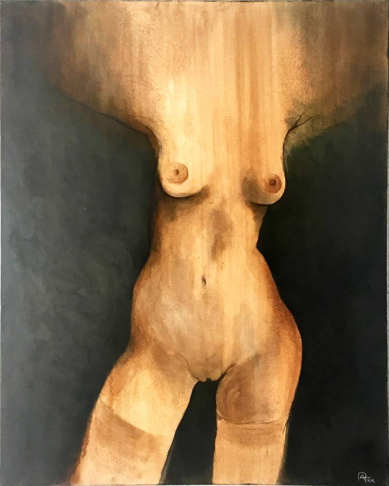 What i try to get by every painting, as well as drawings, is to get the essence with less as possible. In this case i wanted to get the essence of the female body sensuality. The drawing, still visible through the painting, is supporting the light shaping the body figure and sensuality. The color is...