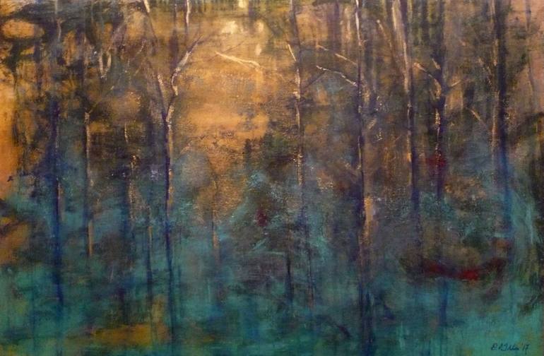 This painting went through so many stages of frustration. I ended up laying the painting in the courtyard in the rain ready to destroy until I noticed how the rain made the paint bubble and run creating the most amazing effect straight from nature. I took it back into the studio and started to work ...