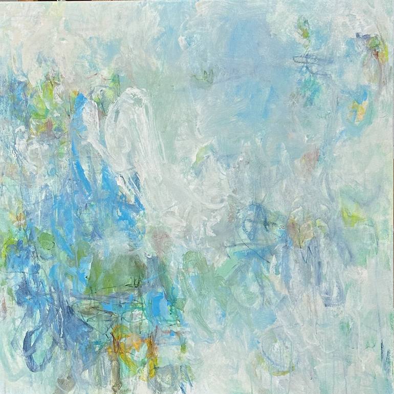 Misty Morning is an original acrylic mixed media abstract painting by Elizabeth Bernheisel. It is inspired by the colors of clouds and mist with blue sky coming through. It is finished with a water based varnish to protect from dirt and UV light. It comes wired and ready to hang and the edges are ...