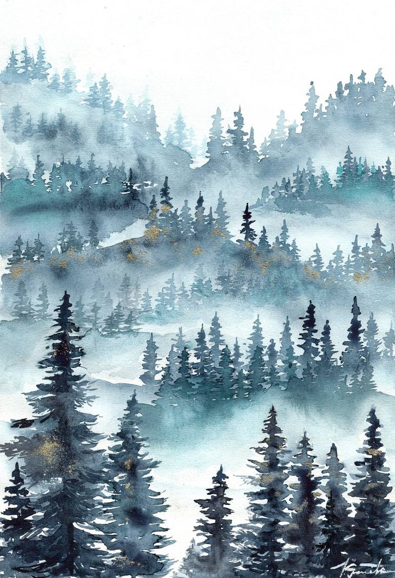 Abstract misty indigo forest. Inspired by fog valley and misty forest landscapes. This is an Original, one of a kind Watercolor Painting, painted on 210gsm Cold Press (Slightly textured) watercolor paper.