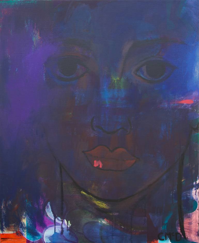 Sensual dark painting, mysterious face, very atmospheric and mystical; acrylic on linen, ready to hang. The edges are painted white.Varnished to a satin finish, a very interested conversational piece.