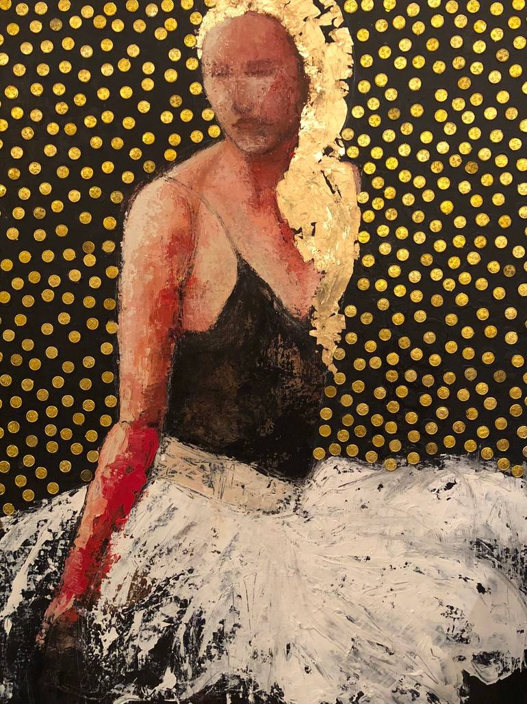 Mobarak (May You Be Blessed) , 2019 Acrylic and mixed media on wood panel with gold leaf 42 x 31 Inches