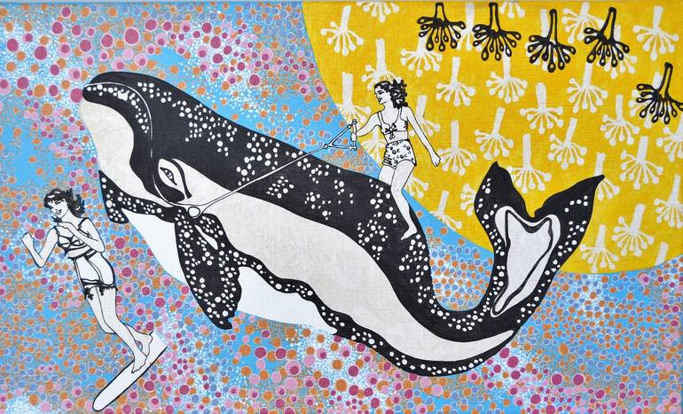 Beautiful whales make us enjoy their presence, we love them, they are not evil. Acylic, linen
