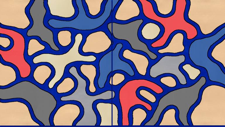 Diptych Size: 90x160 cm (90x80 cm x 2 pieces) This painting is from my NATURE series. I have been creating my abstracts using different organic forms lately. I think some picturesque places from my memories inspire me. If you like this piece you can have it in your space and receive all these color...
