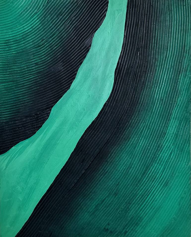 This artwork draws inspiration from the serenity and depth of lush green landscapes at "Twilight" movie. The textured surface, created with intricate layers of paste and acrylic, invites viewers to explore its tactile beauty, reminiscent of nature's imperfect elegance. The rich emerald tones evoke a...