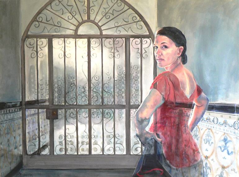 My interest in flamenco dancing led me to Spain. There, I deeply admired the long history of, and influences in architecture. The mysterious light beyond this beautiful gate was compelling and the figure transitory. This inspired thoughts of simultaneous time. Past, present and future in one moment.