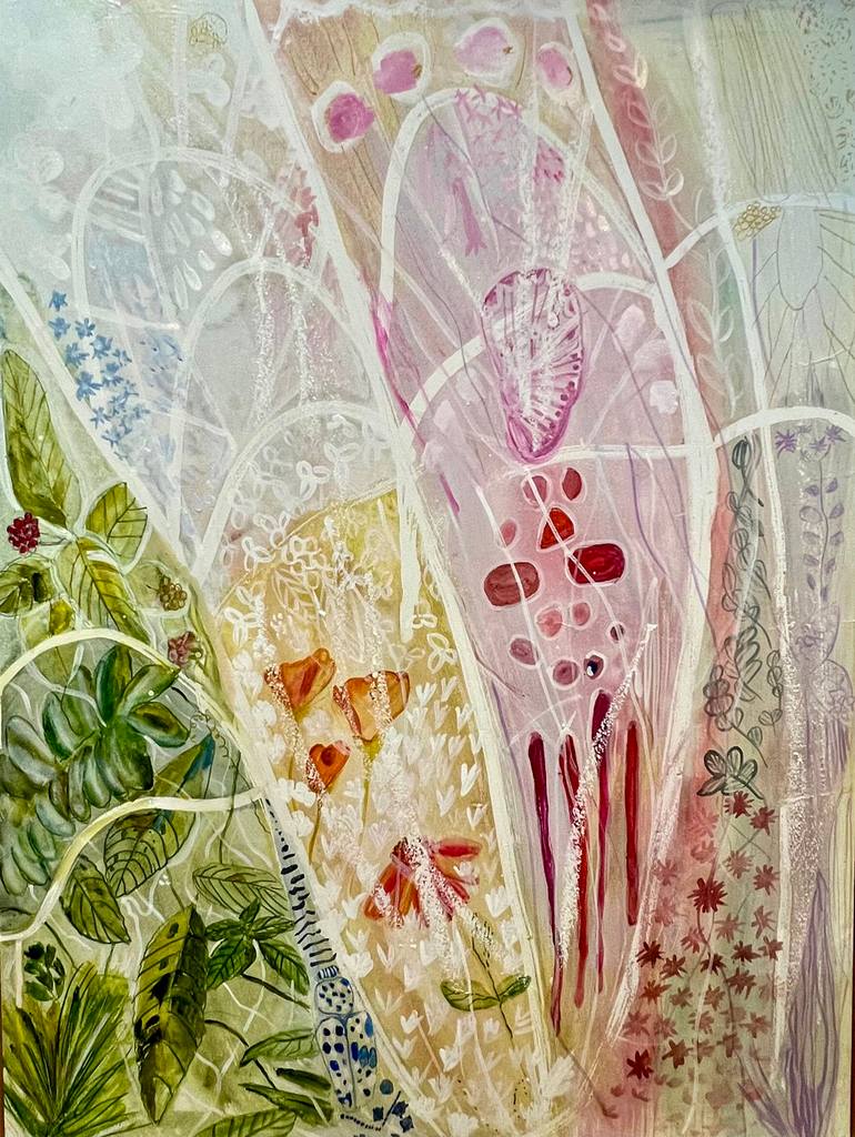This 30”x40” mixed media painting is inspired by my summer pollinator garden that attracts so many monarchs. The plants are intertwined in the monarch’s wing to highlight the importance of providing more native habitats for pollinators. Incorporating art with pollinator patterns into interior des...