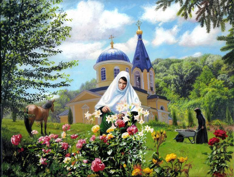 This beautiful oil painting captures the serene Monastery Hincu in Moldova, a place of rich history and deep spiritual significance. Founded in 1678 by the Moldavian Boyar Mihai Hincu, the monastery stands as a testament to faith and resilience. The artist's impressionistic style beautifully portray...
