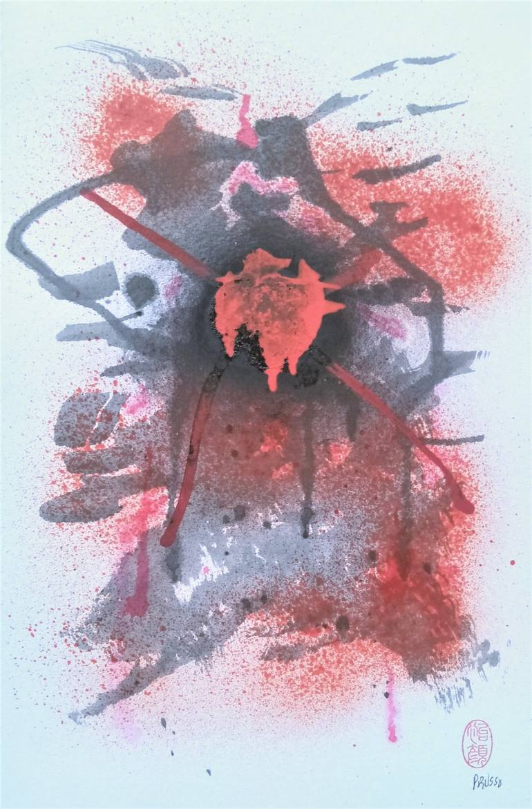 Japanese - sumi-e symbolic. thought provoking Imagination. Usual Ink/acrylic brush wash. Japanese artistic influence.