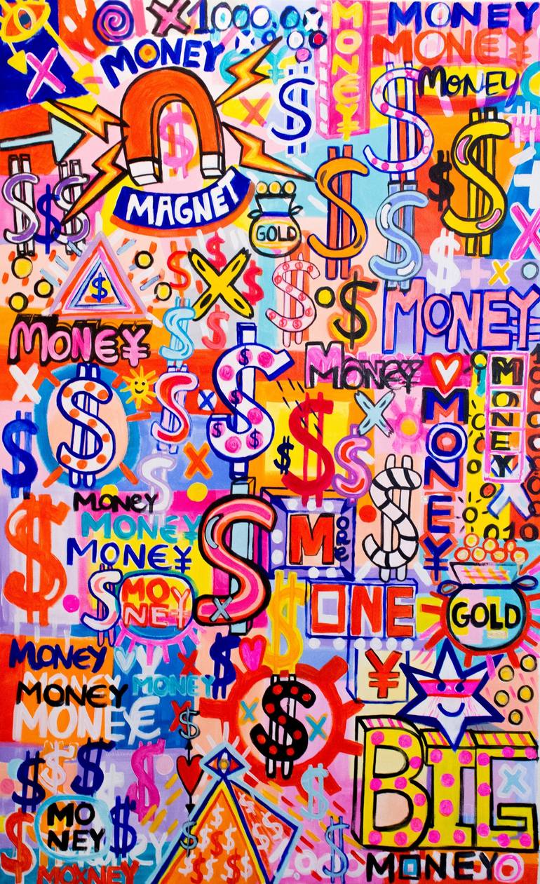 Acrylic and marker on Canvas Money Magnet ¥€$ to Money!! A very powerful piece! Shipping will be unstretched and rolled.