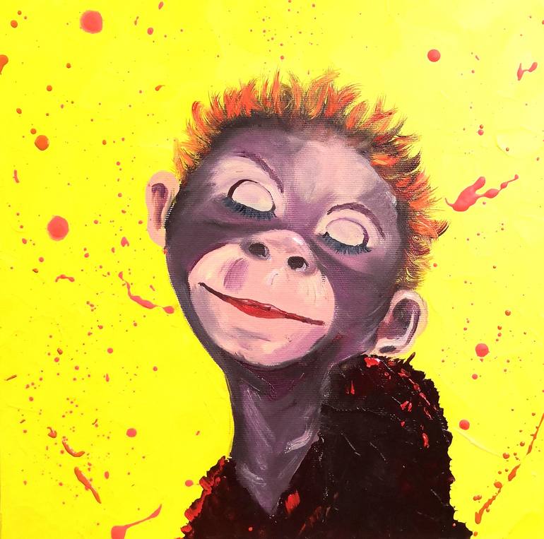 The painting "Monkey", animalism, impressionism, pet painting by Ludmila Riabkova. Canvas on a stretcher 11.8x11.8 inches, depth 0.7 inches, oil, 2020. Сovered with matt varnish. A perfect gift for any occasion for pet lovers. The picture is small, so fit in any interior. The colors of the picture ...