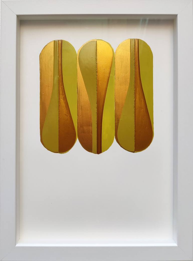 An exploration of colour and form. This series explores the lozenge form which was used throughout medieval heraldry on shields to protect its owner from harm. It has been painted on YUPO paper - a recyclable, waterproof, tree-free synthetic paper and framed in white wooden frame with anti-reflect...
