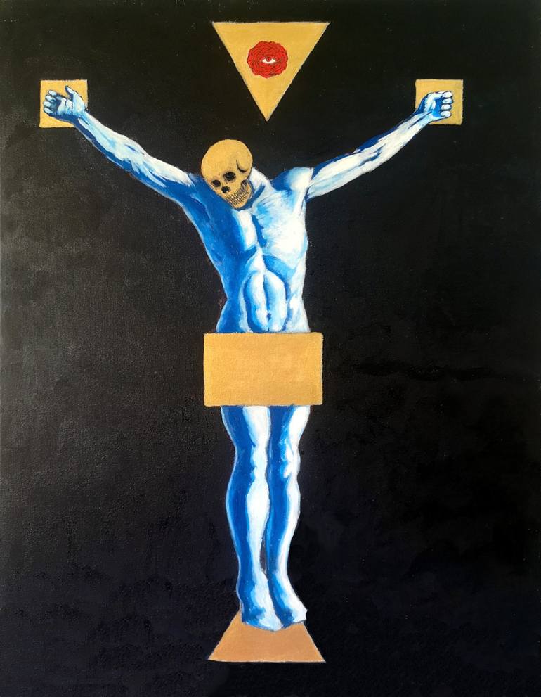 This painting is inspired by Francisco de Zurbaran's "Christ on the Cross". The top of the painting depicts an inverted triangle symbolic of Cosmic Intelligence descending on the individual who seeks divine knowledge, once the seeker is initiated into rituals of psychic purification. The triangle ha...