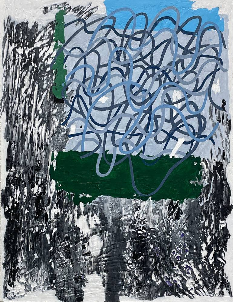 The painting is varnished & ready to hang. “My work is a gesture in a state of restraining emotions. I don't want to express a lot in my work and give it meaning. By repeating simple lines and colors, I want to show the new energy of life created by the work itself by meeting the light and the dept...
