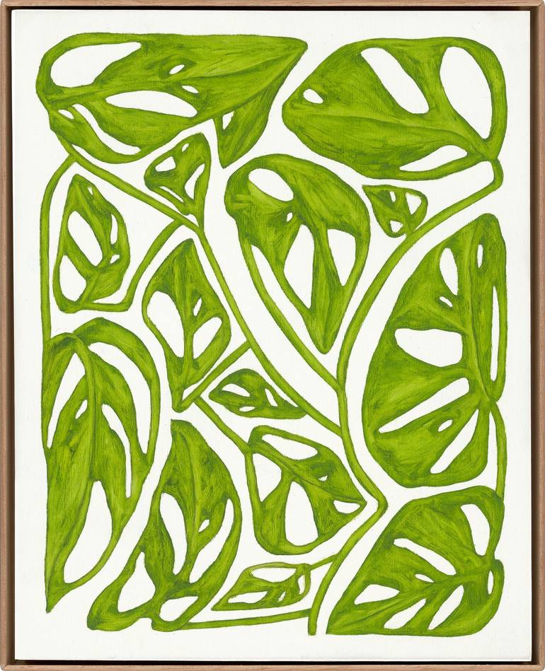 Title Monstera Circlus Botanicus c.VII № 878239 Year 2023 Medium impasto oil paint Finish matt unvarnished Carrier cradled birchwood Frame hardwood box Note reverse labeled Hang up system sawtooth & L-hook Certificate of authenticity Wooden shipping crate Painting size Cm 20w / 11h / 2d Inch ...