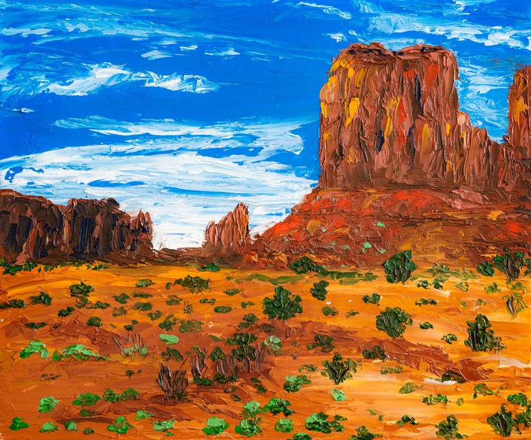 Arizona National Park colorful landscape of the mountains. Famous place Monument Valley, original oil painting on cardboard (25 x 30 cm). Original oil painting is made with high-quality paints, using a palette knife. Perfectly suited to the interior of your home. A unique and unforgettable gift fo...