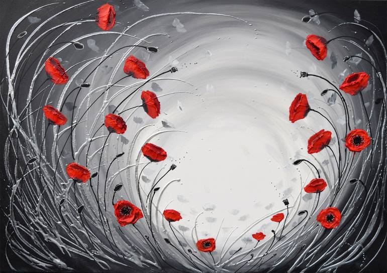 "Original painting of red poppy flowers. Full of thick texture. 40x28"" (100x70cm) READY TO HANG Each painting is professionally wrapped and secured in a custom made box. I have a courier at my studio daily so I can ensure your painting is sent out swiftly. Feel free to contact me if you have any q...