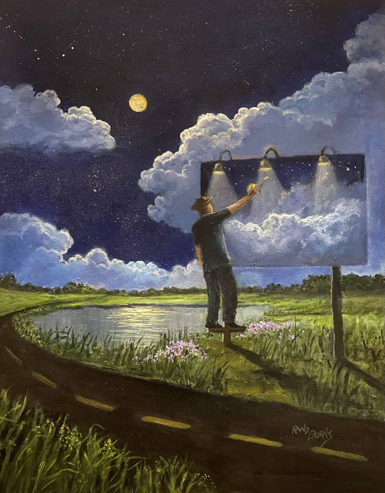 A theater in the sky, clouds behold God's everlasting presence in His creation that shares His light on the world around us. Hand to canvas humbly coveys a representation of the wonders He has created for our enjoyment. Through brush, paint and canvas the lifelong passion of this artistry, through this special medium, continues. I thank God above for this opportunity He Provides. My paintings are from imagination and begin on a white canvas that has been toned. I do not use photographs, but access imagination, which is most important for myself in being a painter.