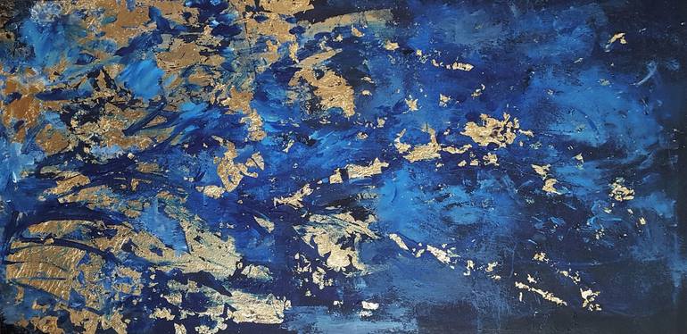 Inspired by a moonlit night looking over the bay from Killiney, Co Dublin this autumn. The golden shimmer of the full moon casting its light on the sea created a captivating sight which I translated on to canvas in a rough expressionist style. This is a large piece but for some strange reason, it'...