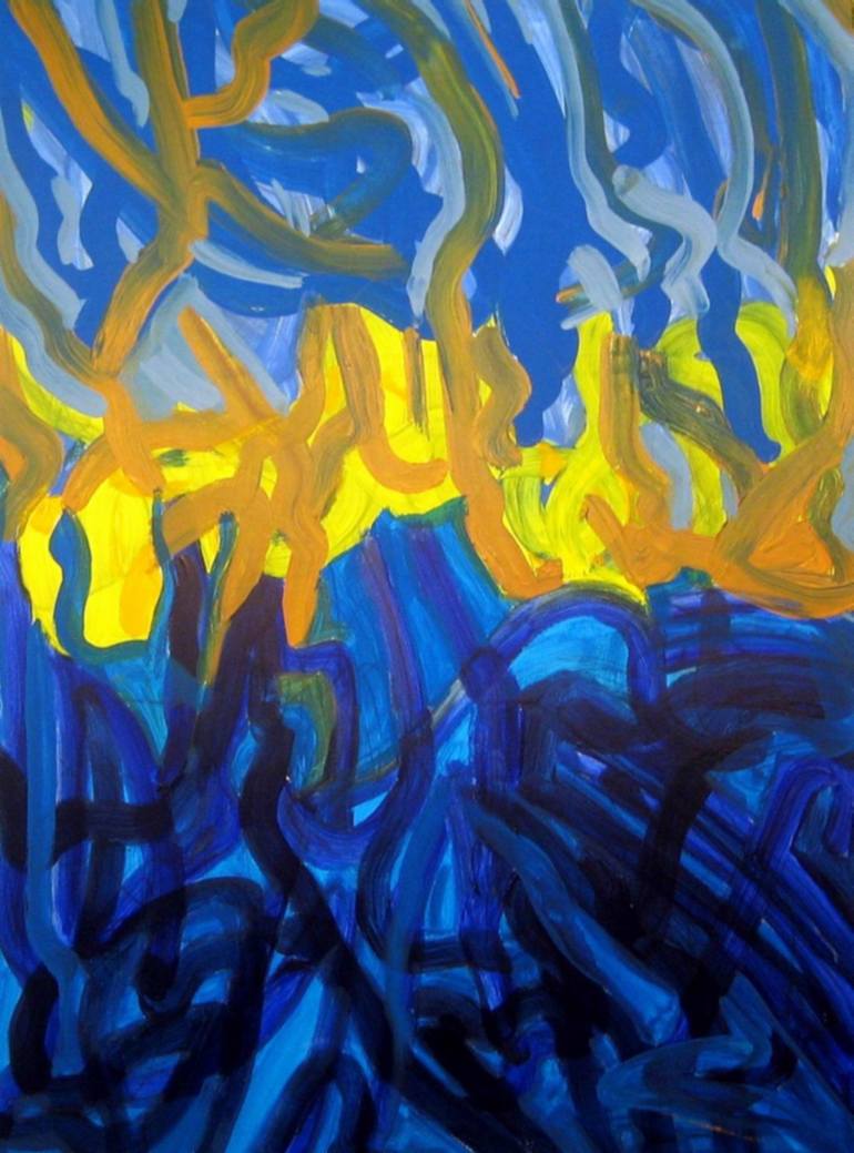Abstract expressionist acrylic painting onj canvas 36x48 in.