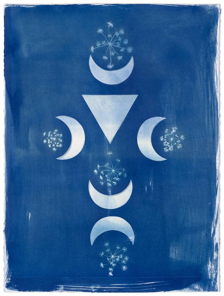 Moons for Mystery Enigma moons. Moons for deep awe. Moons for seeing your internal galaxy. Lessons from the Moon Collection This is a piece from the "Lessons from the Moon" collection. Each mixed media cyanotype in this collection reflects lessons from the moon, as she accompanies us every night t...