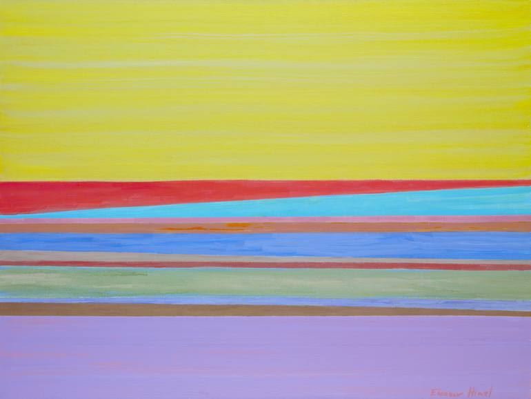 Time spent in Japan gave me an appreciation for the simplified design that is indigenous to that country. It has affected the way I look at art, architecture and fashion, as well. The art of the Arctic Inuit people, which features a subject from nature surrounded by one color, has inspired some of my work. The moods and colors of the ocean beaches have been a constant source of inspiration. Memories of watching waves cascading onto the shore and then receding are entwined with the scent of salt water. The emotional essence of each locale is reflected in contrasting layers of bright paint. The parklands of Ontario, with their peaceful flat landscapes and giant uninhabited lakes, have also been subjects of my paintings. It is a pleasure to sketch and be enveloped in the stillness of the woods, rocks and shimmering water. The works of Arthur Dove, Milton Avery, Jacob Lawrence and the Canadians, Lawren Harris and Jack Bush, have helped me to develop my own view of these beloved areas. I am also an admirer of the British artist, John Hoyland.