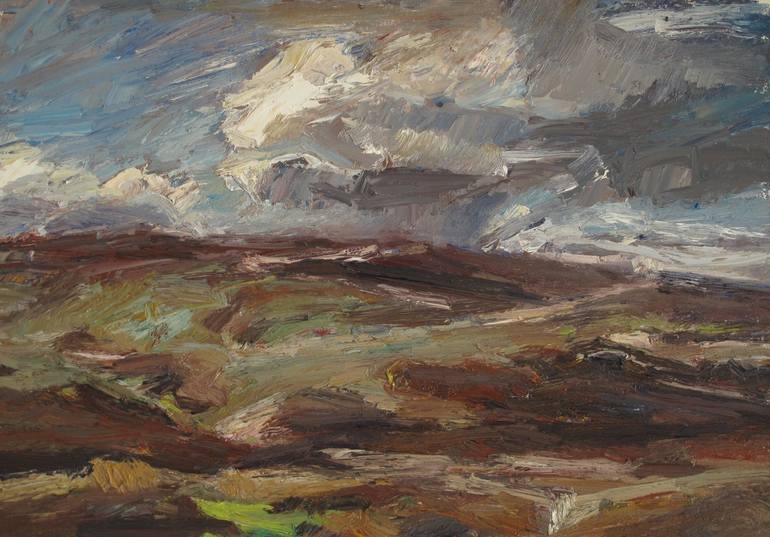 Painted out on the moors near Pateley Bridge, North Yorkshire. I was attracted by the colours of the land here-areas of burnt vegetation and new growth also the solitude and the ever changing sky.