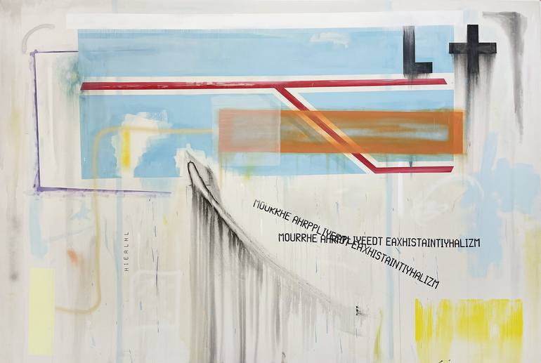 Constructivism paired with abstract expressionism plus punk and an allusion to situationism.The rest is a subjective vanitas variable in which the title finds its expression. only is the man his existence, but also his created.The rest is a subjective vanitas variable in which the title finds its e...