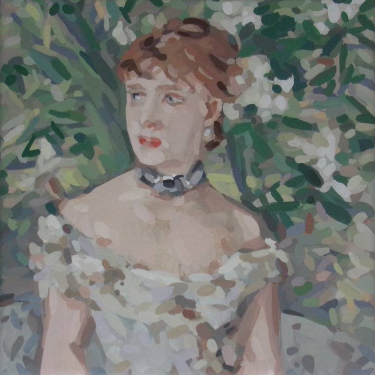 After the painting of a "Young Girl in a Ball Gown" by Berthe Morisot (Musée d'Orsay, Paris). In the "More or less" series (D'A(peu)PRES), I make some biased copies of paintings I admire, focusing on brushstrokes and colored spots. As in some kind of "Pop Impressionism"...