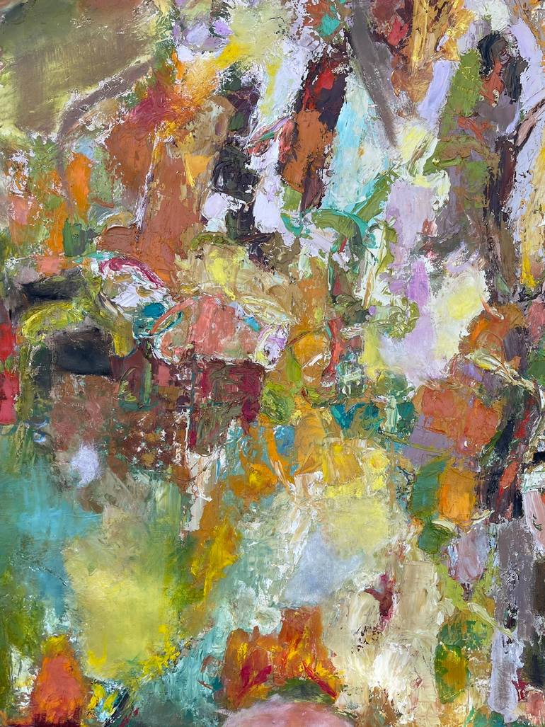 This piece was painted in the springtime inspired by the colors, shapes and flow of surrounding floral. There are quiet spaces inside this piece as well as those cartwheeling with the energy of life. For this reason I chose the description “Morning Glory”. I was always fascinated by morning glories...