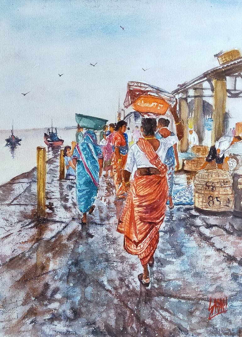 This Watercolor Painting Related Harbour Fisherman's Morning... You can see Professional Style of Watercolor Painting....I participate so many international Competition and they selected so many Works of me...u can find Google also.I will not make Same Painting if anyone ask again....If you Purchas...
