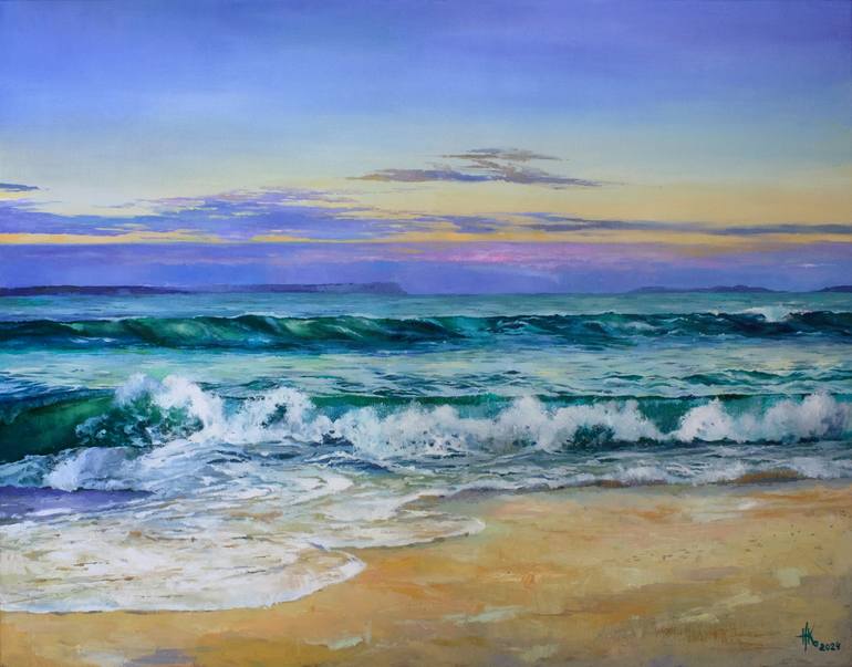 In this vibrant expressionist seascape, bold oil brushstrokes convey the energetic motion of the sea, blending harmoniously with the calm hues of a pastel sky. The contrast between the powerful waves and the tranquil horizon captures a moment of renewal and possibility. This artwork is designed to b...