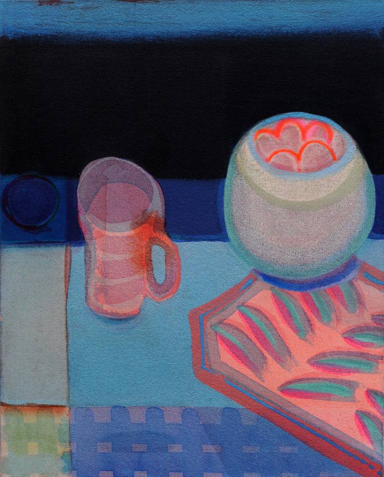B.1971 Nairobi, Kenya. Ella is a painter who investigates her own experiences of the world. Her semi-abstract paintings incorporate a love of colour and pattern, absorbing and interpreting her surroundings she treads a fine line between representation and abstraction with the aim of sparking the viewer’s curiosity and igniting their imagination. Ella’s new paintings centre around the home, personal connections to treasured objects and interior spaces: A kind of magic realism with heightened colours and shapes which blur the boundaries between what is real and what is fiction. ‘Sometimes I’m remembering the moonlight pouring over the kitchen table in the early hours, its unworldly light changing the colours of everything in the room. Sometimes I’m sensing into the joy of connecting with people and sometimes a painting is born out of almost complete fiction, it becomes itself without too much thinking, it just is.’ Ella has exhibited widely in the U.K. Her work is held by collectors in the U.S. Canada, Australia, the Middle East, Europe and in the U.K.