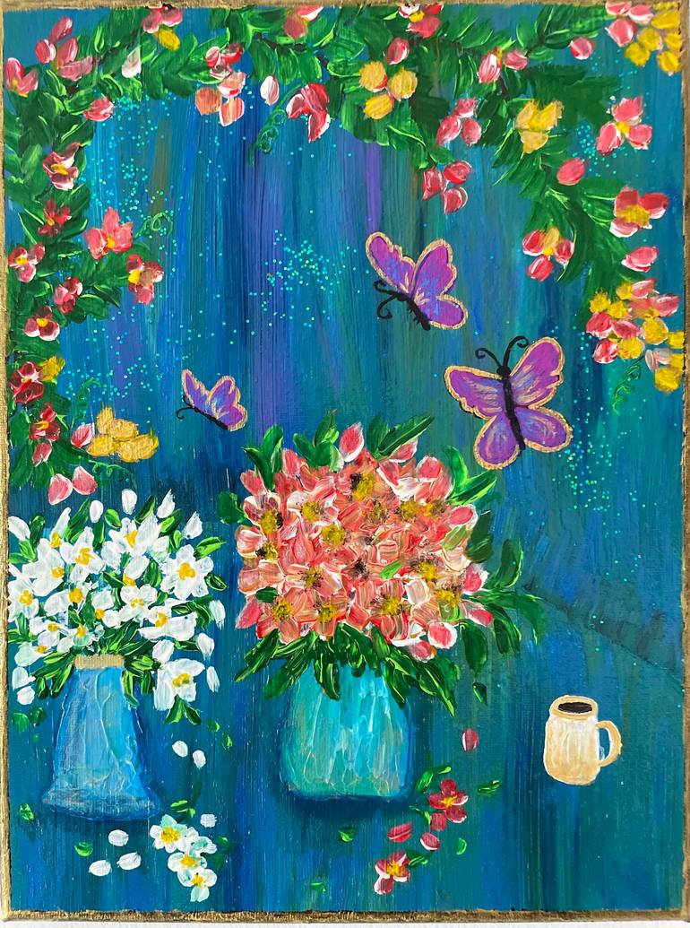 my favorite part about painting is doing what you feel in the moment ,and at 6am whilst having some coffee trying to stay up since my daughter has not slept a blink the sun had just begun peeking through and as she laughed and played I felt such calm and joy so I took to my paints and canvas and thi...