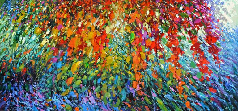 Morning dew - Acr. oil on canvas, large size, 2023 Size - 70cm x 148cm, (27.5" x 58.2") Vibrant colors, rich textures and color tones accurate original brushstroke are the hallmarks of your finished piece. This oil painting was created on canvas, with the painting continued around the edges for a...