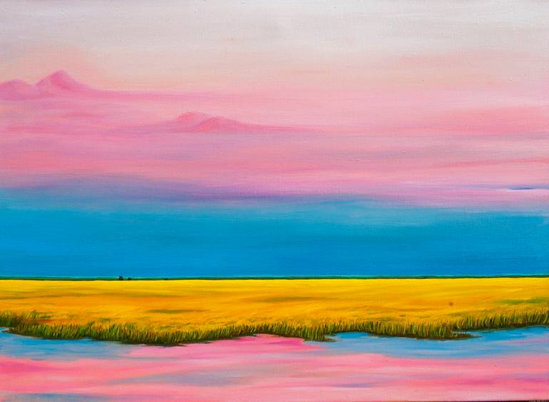 In this artwork, I sought to capture the serene whisper of dawn as it kisses the earth. Using fluid, impressionistic strokes in oil, I melded vibrant yellows with tranquil blues and pinks, creating a minimalist landscape that ebbs and flows with quietude and warmth. This painting is a serene reminde...