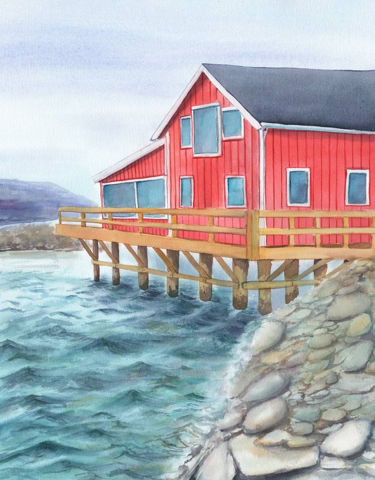 MORNING IN NORWAY Watercolor by Svitlana Yanyeva 2023 Size: 50x40cm (15.7 x 19.7 inch) QUALITY: This original watercolor painting is my handmade unique artwork, painted on 100% cotton watercolor paper with finest quality watercolor paints, ensuring the colors do not fade over time AUTHENTICITY: Sign...