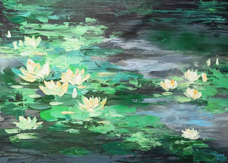 We would like to introduce the painting **"Water Lily in Full Bloom"**, a beautiful work of art that shows the elegant beauty of water lilies. The painting depicts the image of water lilies blooming in the middle of a lake, creating a quiet and relaxing space, helping viewers feel the harmony betwee...