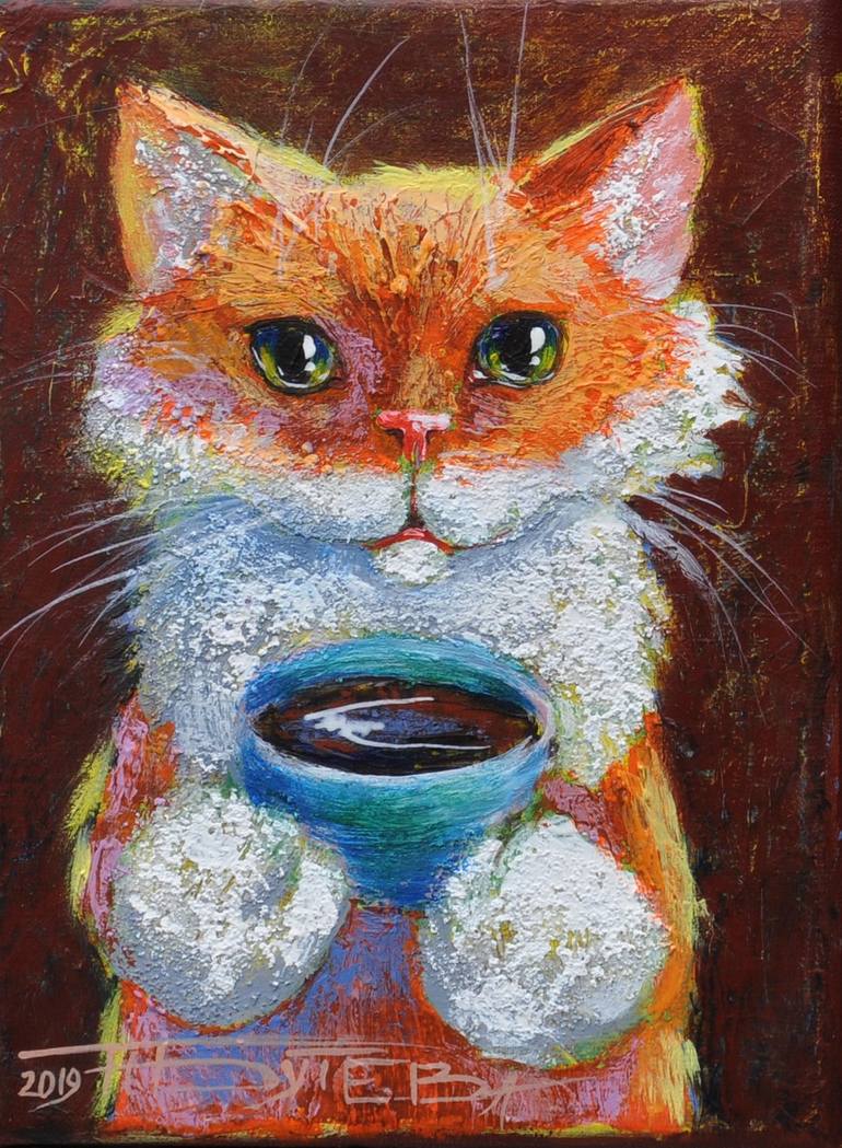Imagine your best friend is willing to bring your morning coffee ... The painting is painted in mixed media.