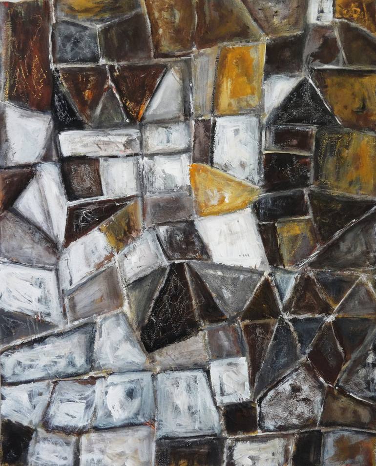 "Mosaic in the Wall" is a powerful mixed media abstract painting that merges architectural structure with expressive abstraction. Constructed through a meticulous layering of textures, this piece evokes the fragmented essence of urban walls, timeworn surfaces, and layered histories. The composition ...