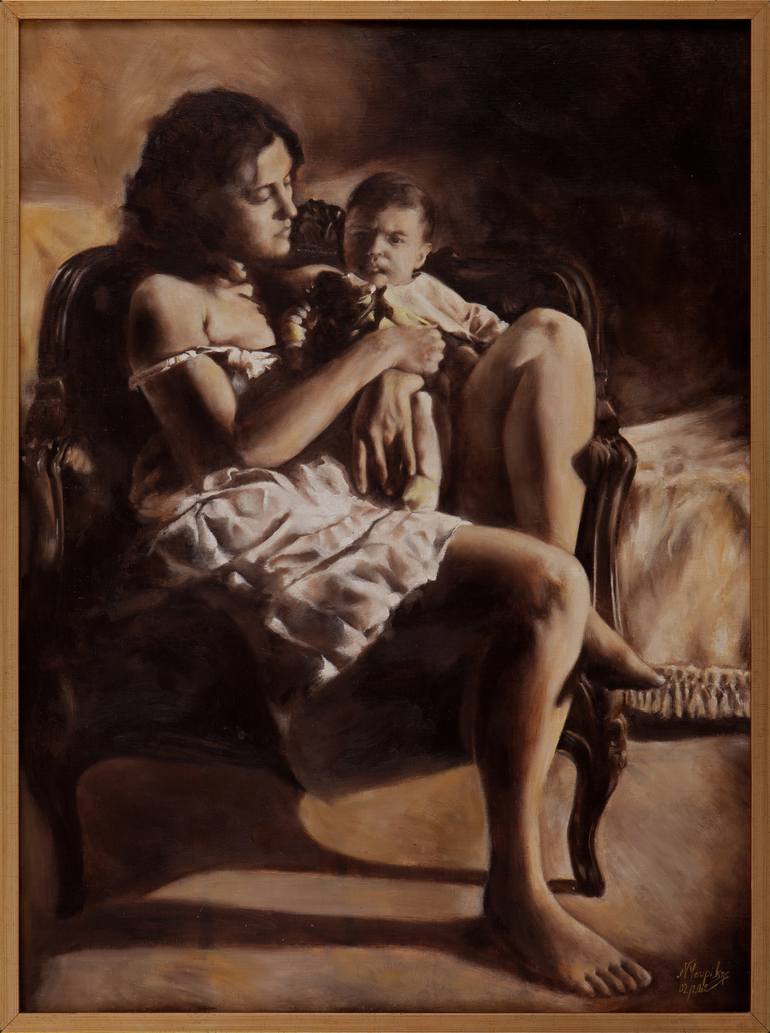 Achilles in the embrace of his mother's, he seeks desperately the source of life that is his mother's breast. This one clamps on her with longing and tenderness. All the power of the work is the triangle from her eyes, in his eyes and in her chest. Life becomes desire, and desire becomes life.